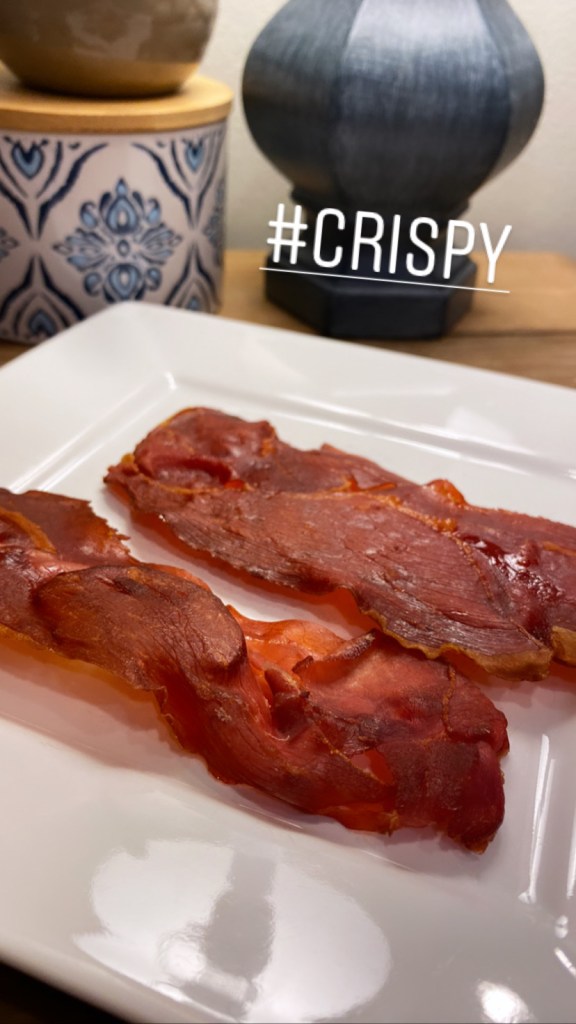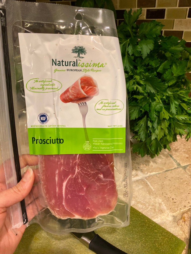 Just before I prepare the chicken, I added a couple of slices of prosciutto to a baking sheet to get crispy so I can top the panzanella salad. This is an added crunch and really accents the dish well. The prosciutto is also an ode to the saltimbocca dish, a thin piece of chicken or veal rolled up with prosciutto and cooked in wine and butter (yum…)