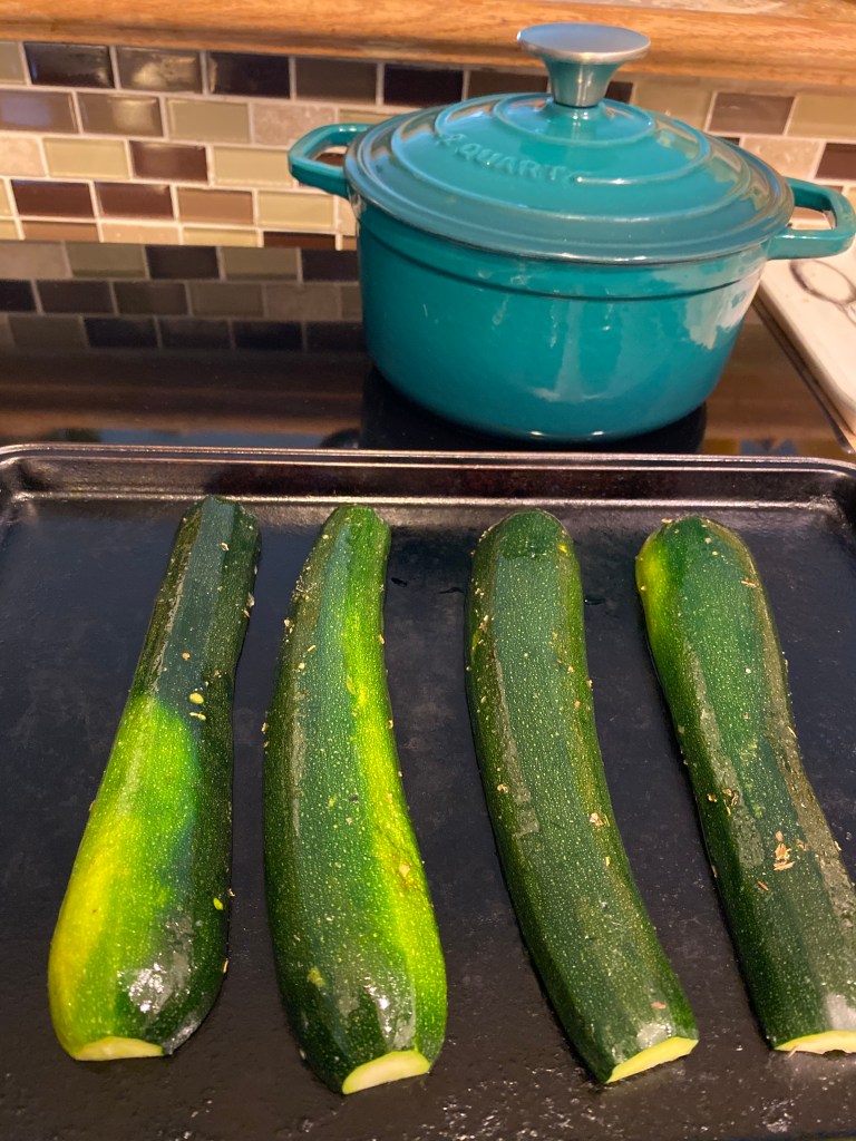To begin, I preheated the oven to 450° to roast my zucchinis.