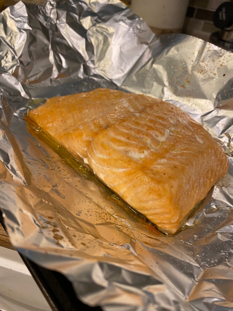 My dish created was a salmon meal. My husband chose my mandatory ingredients and they were…salmon, mango, tequila, and hippeas. My first idea was WTF do I make? My second idea was salmon cakes but I ended up making a simple crusted salmon filet because I was not in a mayonnaise mood. I cannot believe how good this dish turned out either!