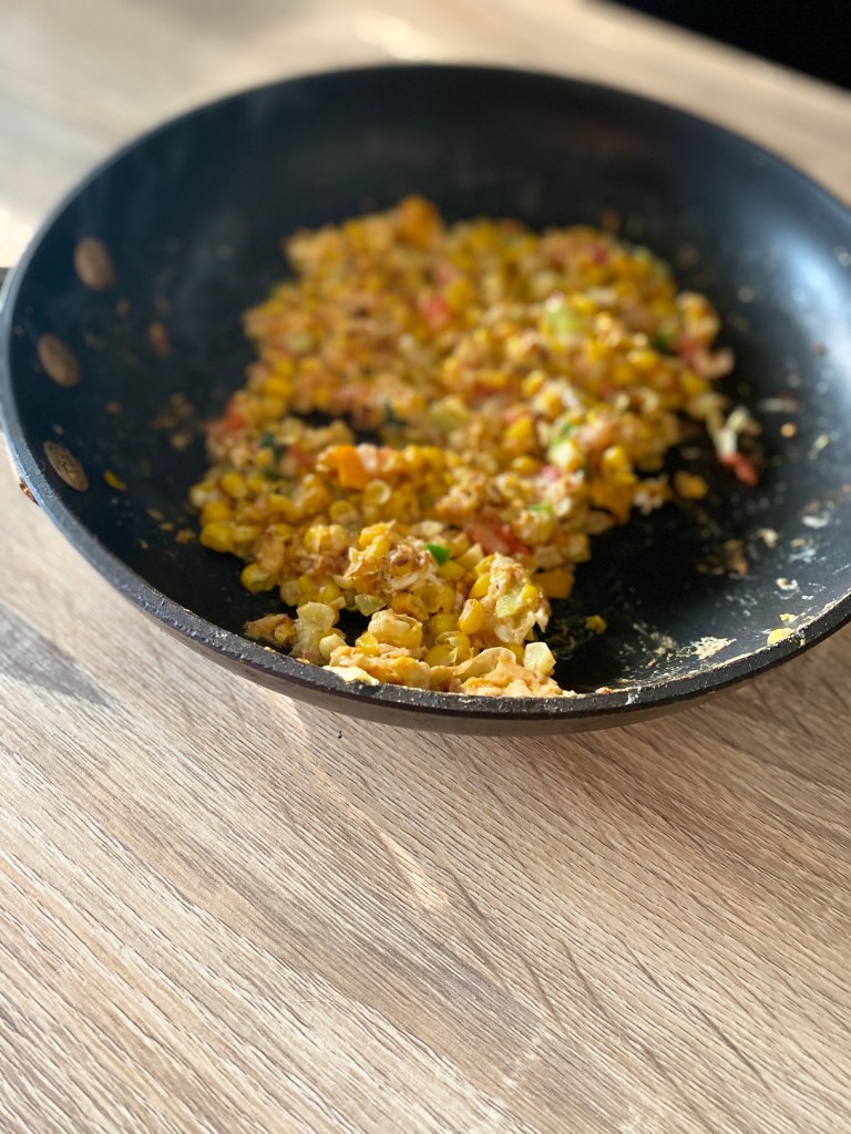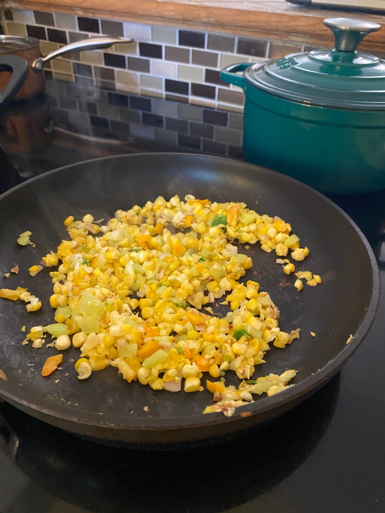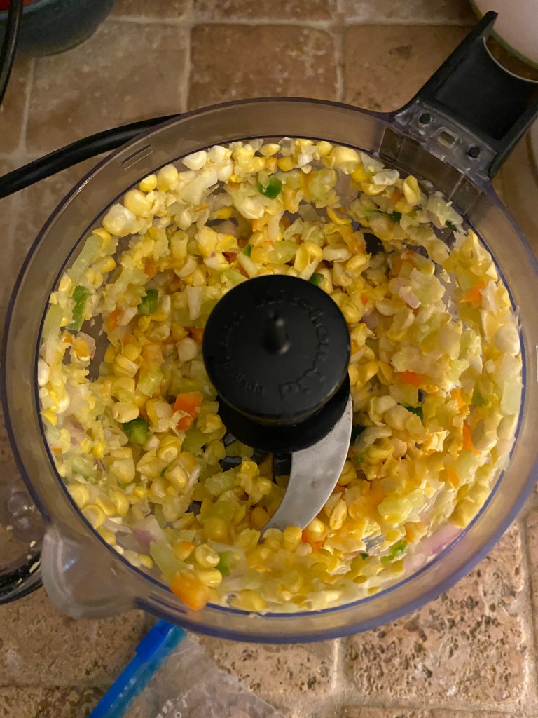 I used corn, cubanelle pepper, bell pepper, onion, jalapeño, and cilantro. I added fresh diced tomato after I pulsed the other veggies so I did not make my mixture too watery.
