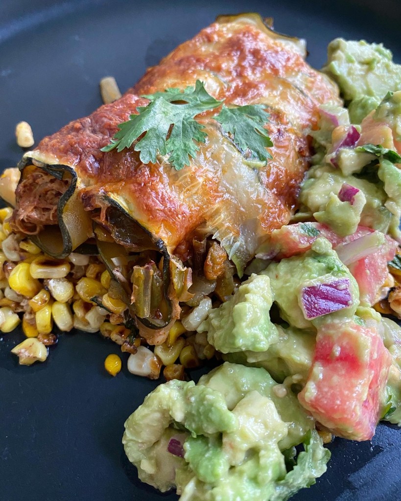 For this dish, you could easily substitute many aspects of this. Don’t have chicken breasts? Use pork, beef, chicken thighs, or keep it vegetarian! We have made these with black beans and also refried pinto beans…incredible! We didn’t use any sauces for these enchiladas but you could easily buy a jar of your favorite enchilada sauce or salsa to bake on top of your dish. You could also use your store bought sauce or salsa to cook with your meat and veggies in the crock pot instead of layering it on top of your zucchini enchiladas. Use up whatever veggies you have, corn, onions, peppers, beans, tomatoes, corn, radishes, etc. The list and ideas are always endless!