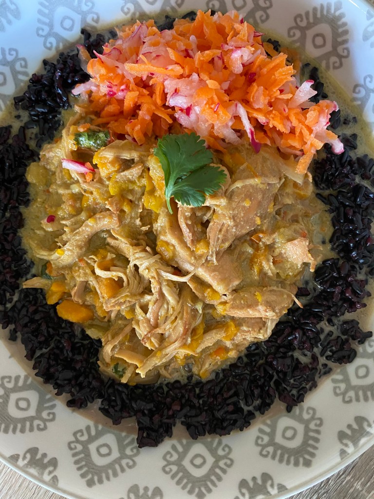 Coconut milk and a jar of Thai green curry. Yup. Yum.